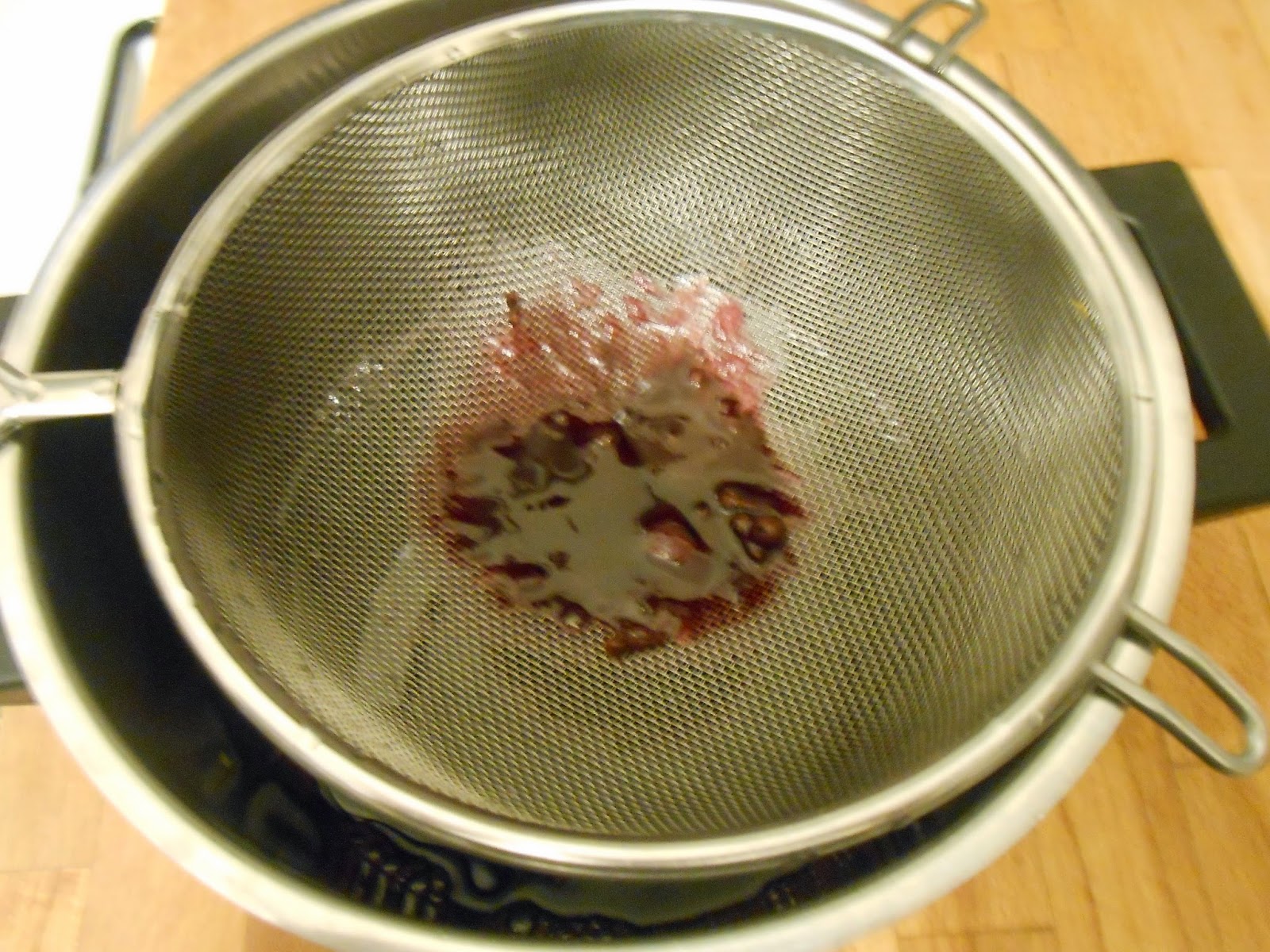 Την επόμενη μέρα αφαιρούμε τα φρούτα και τα στίβουμε μέσα στο κρασί για να βγάλουν τους χυμούς τους. Σουρώνουμε το κρασί σε μια κατσαρόλα.